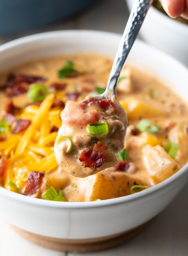 * Any low melting-point cheeses, such as Swiss and cheddar, can be substituted for the Velveeta. Or for a kick, use pepper jack. If you’re looking to cut some fat from this soup, reduce the ground beef with ground sirloin, round or turkey.